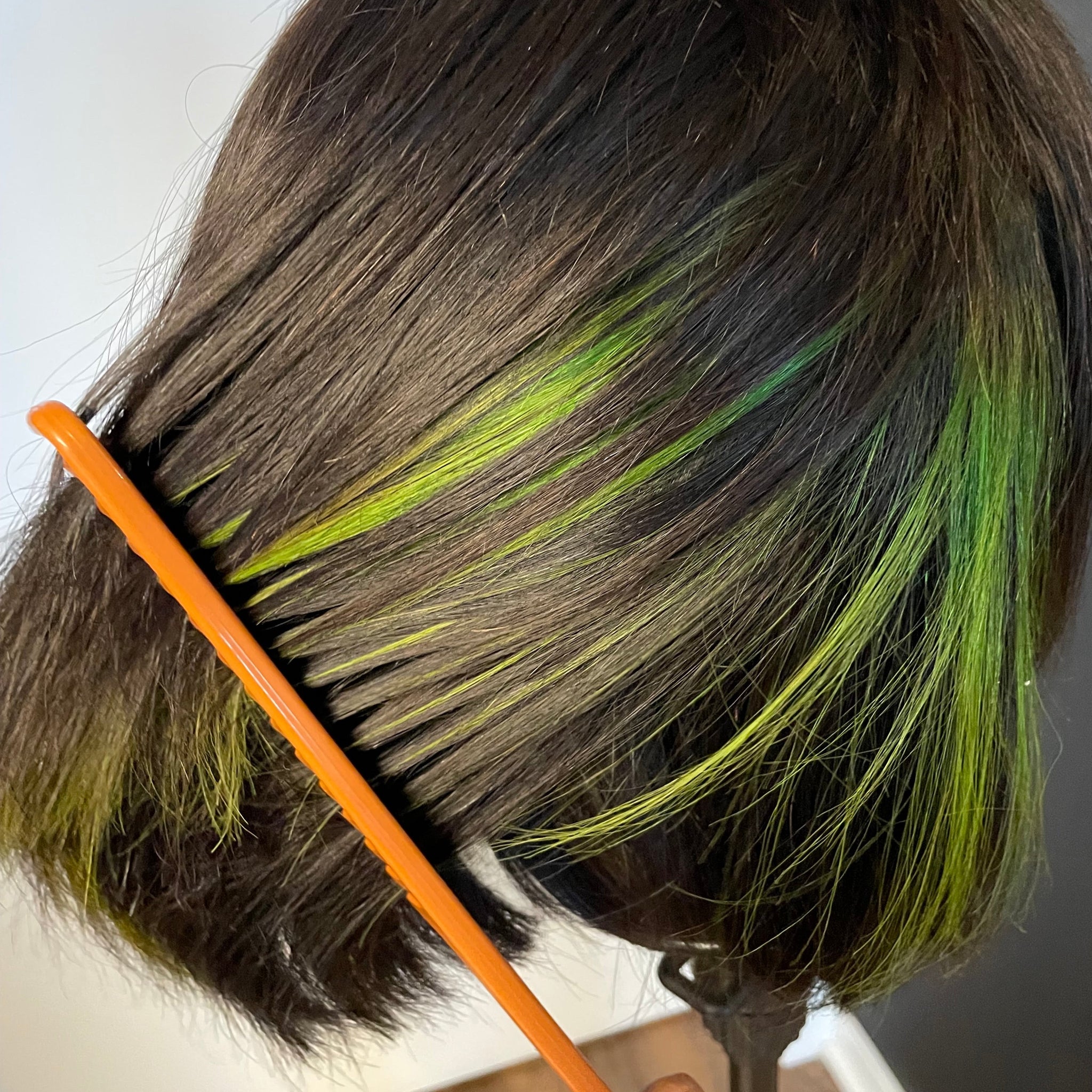 Natural Hair 1B with Green Bangs and matching Peekaboo